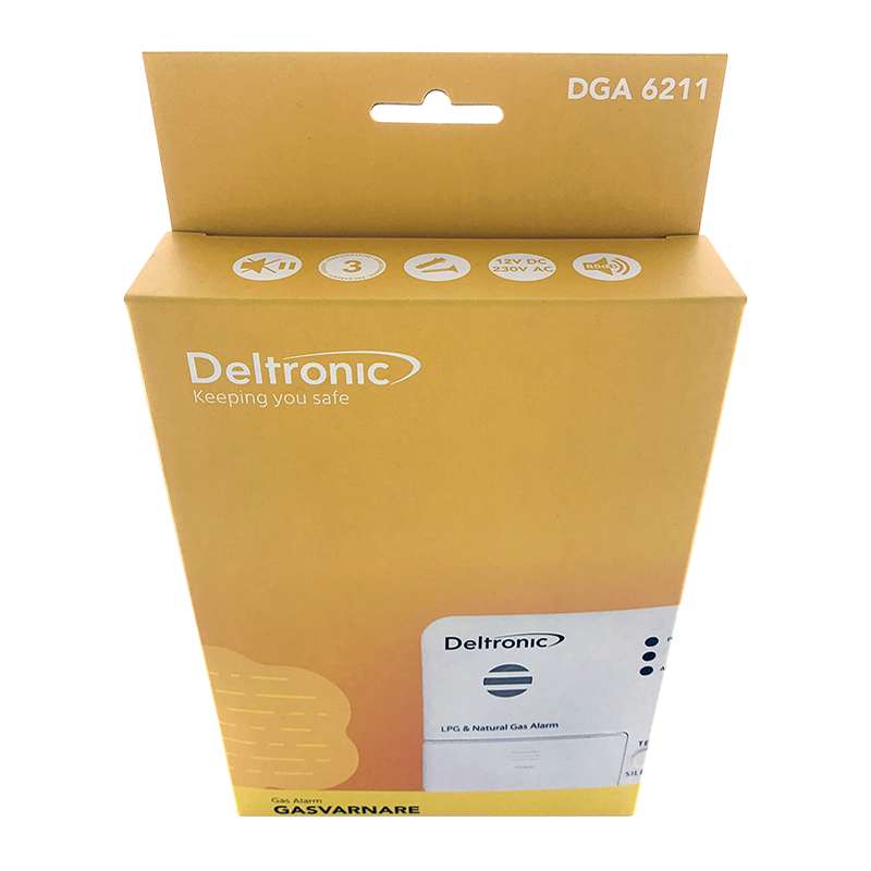 Deltronic DGA6211 är ett gaslarm som larmar snabbt och skyddar mot explosions- och brandfara vid läckage av gasol (flaskgas) samt stads gas, naturgas och liknande.